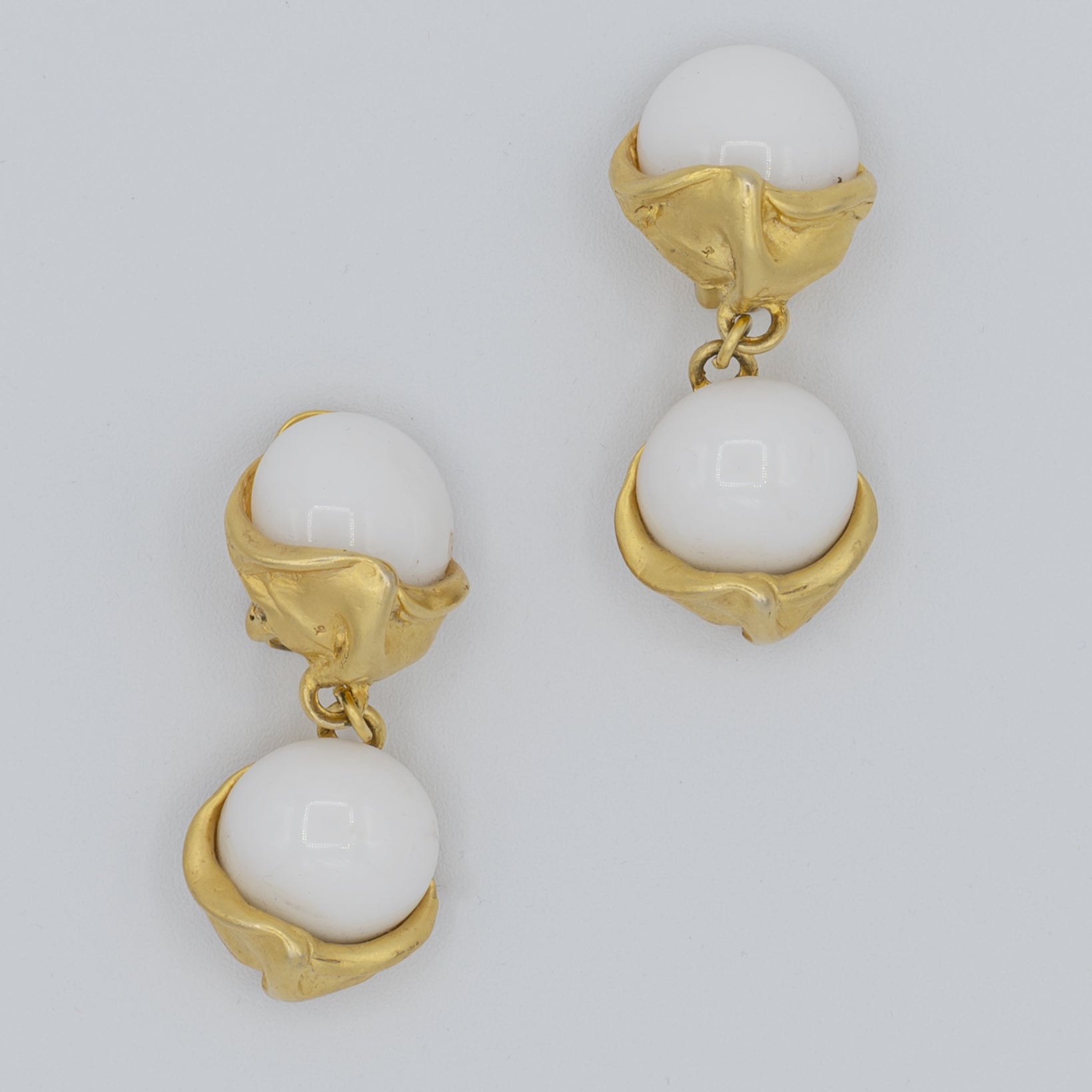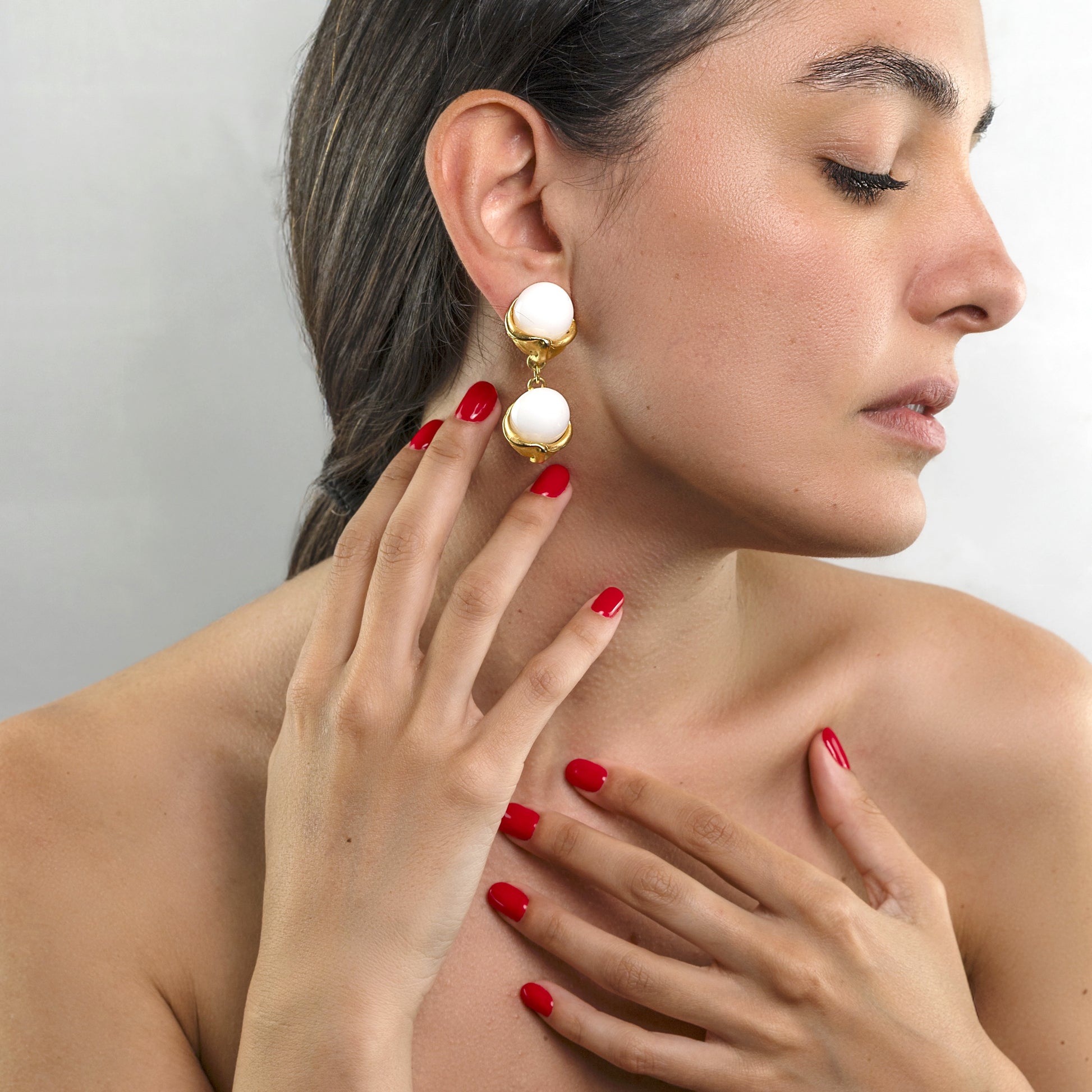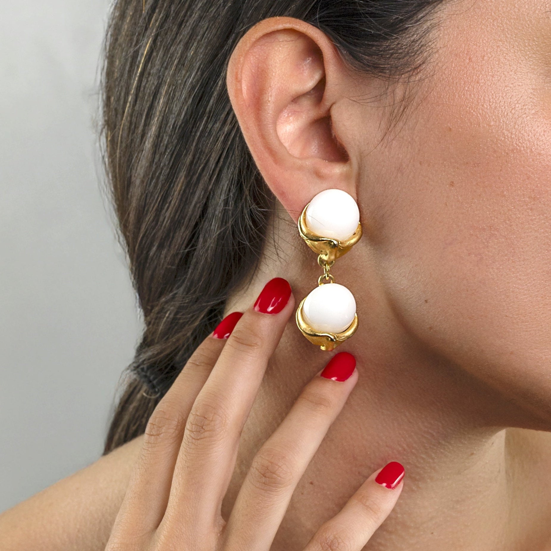Orecchini vintage eleganti con doppia perla bianca incorniciata in oro.