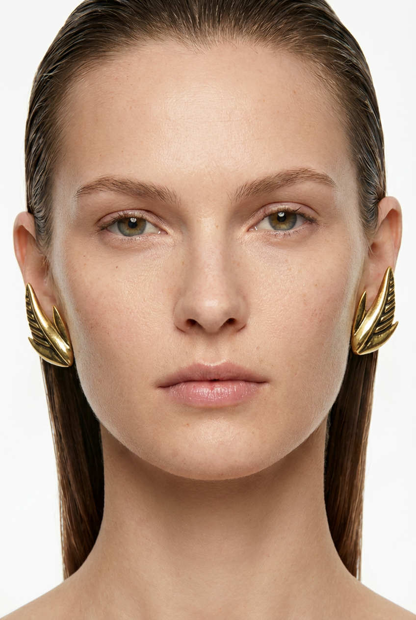 Scultura da orecchio. Doratura intensa e forma che lascia il segno.