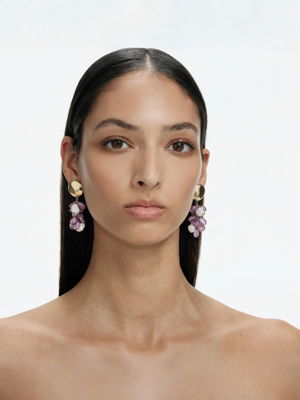 - Pendenti in cristalli viola e perle bianche irregolari