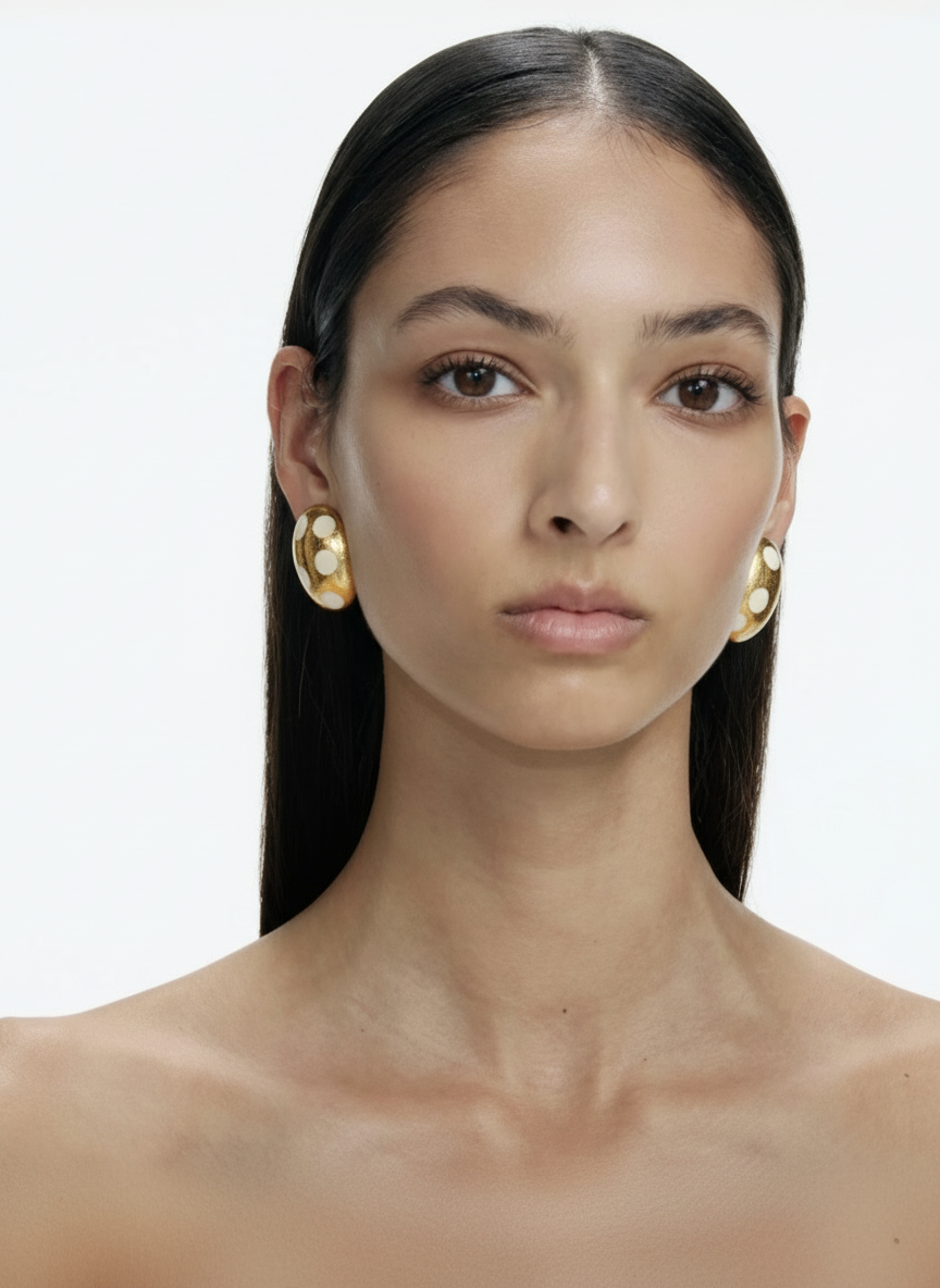 Questi orecchini Valentino anni ’90 sono l’epitome del glamour italiano: dorati, scenografici, e senza tempo.