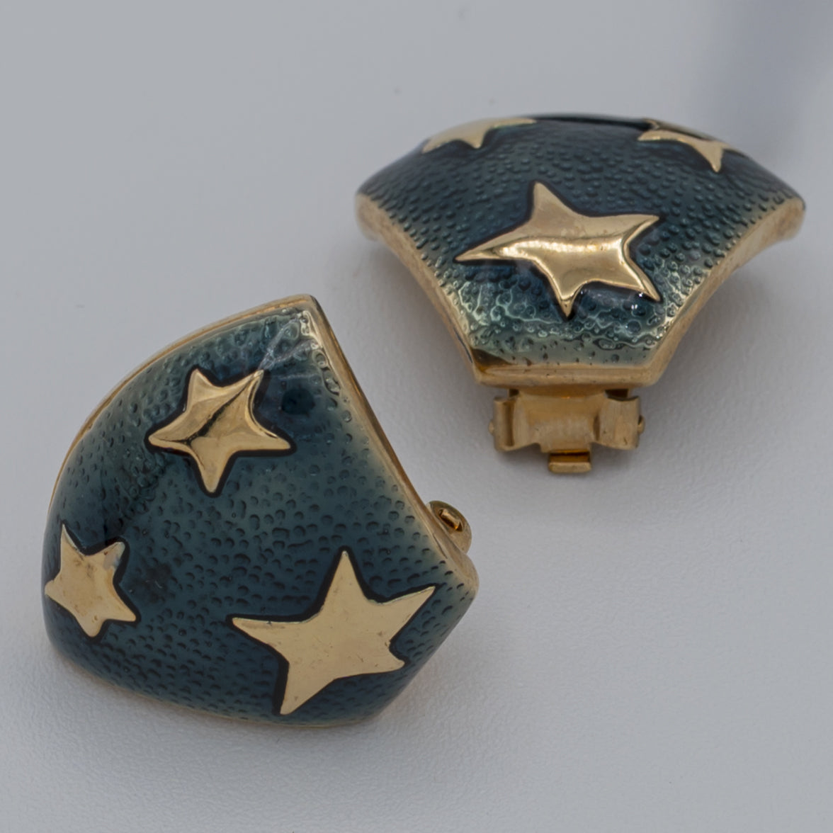 Stelle dorate e una forma geometrica che accende tutto il viso. Questi orecchini Valentino anni ’90 sono come certi pensieri improvvisi: impossibili da ignorare. Un pezzo d’archivio per chi ama portare luce, senza chiedere permesso.